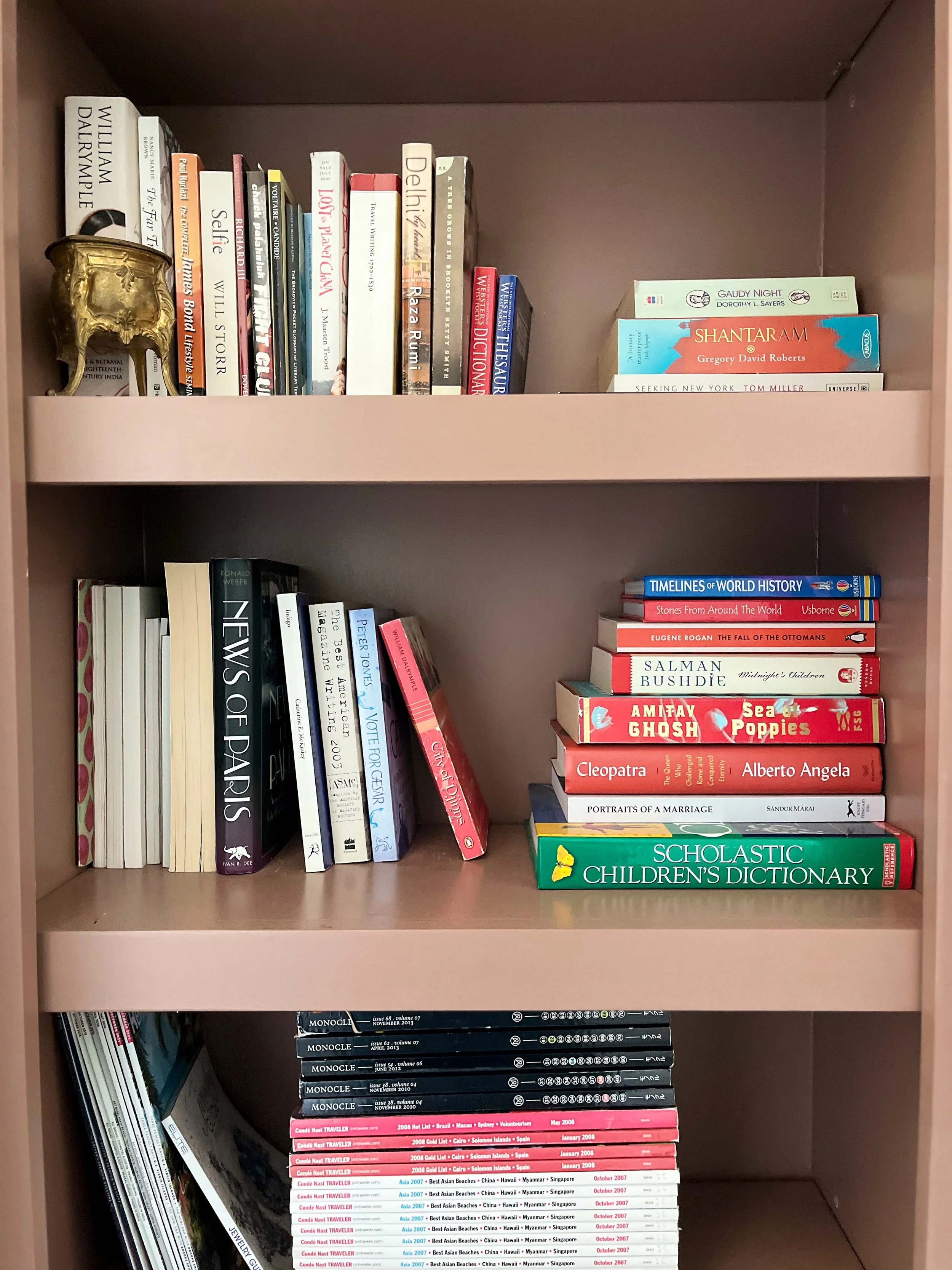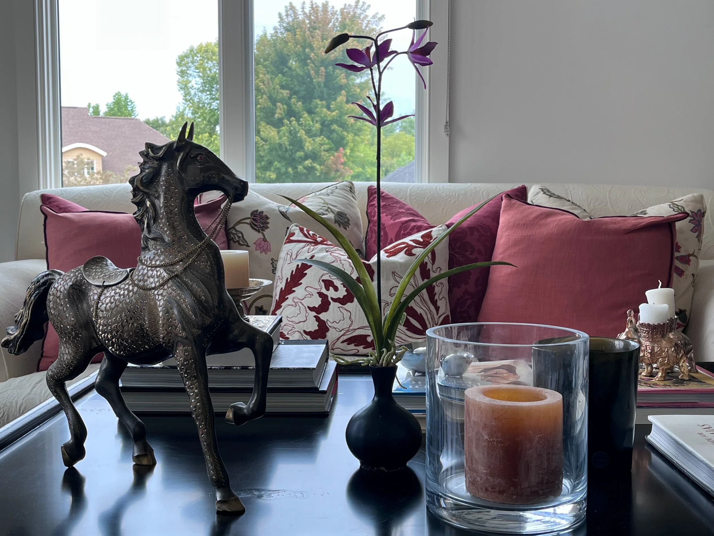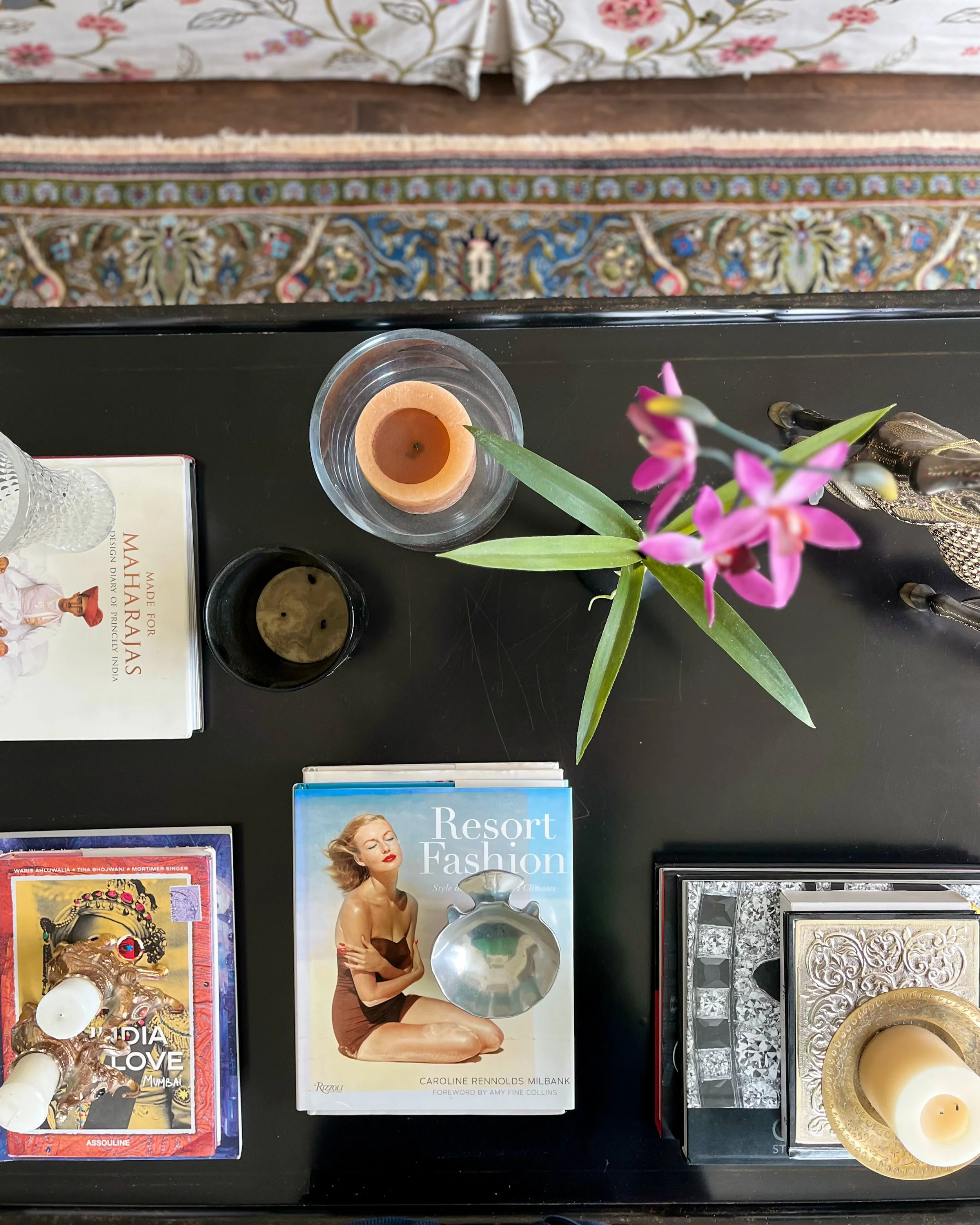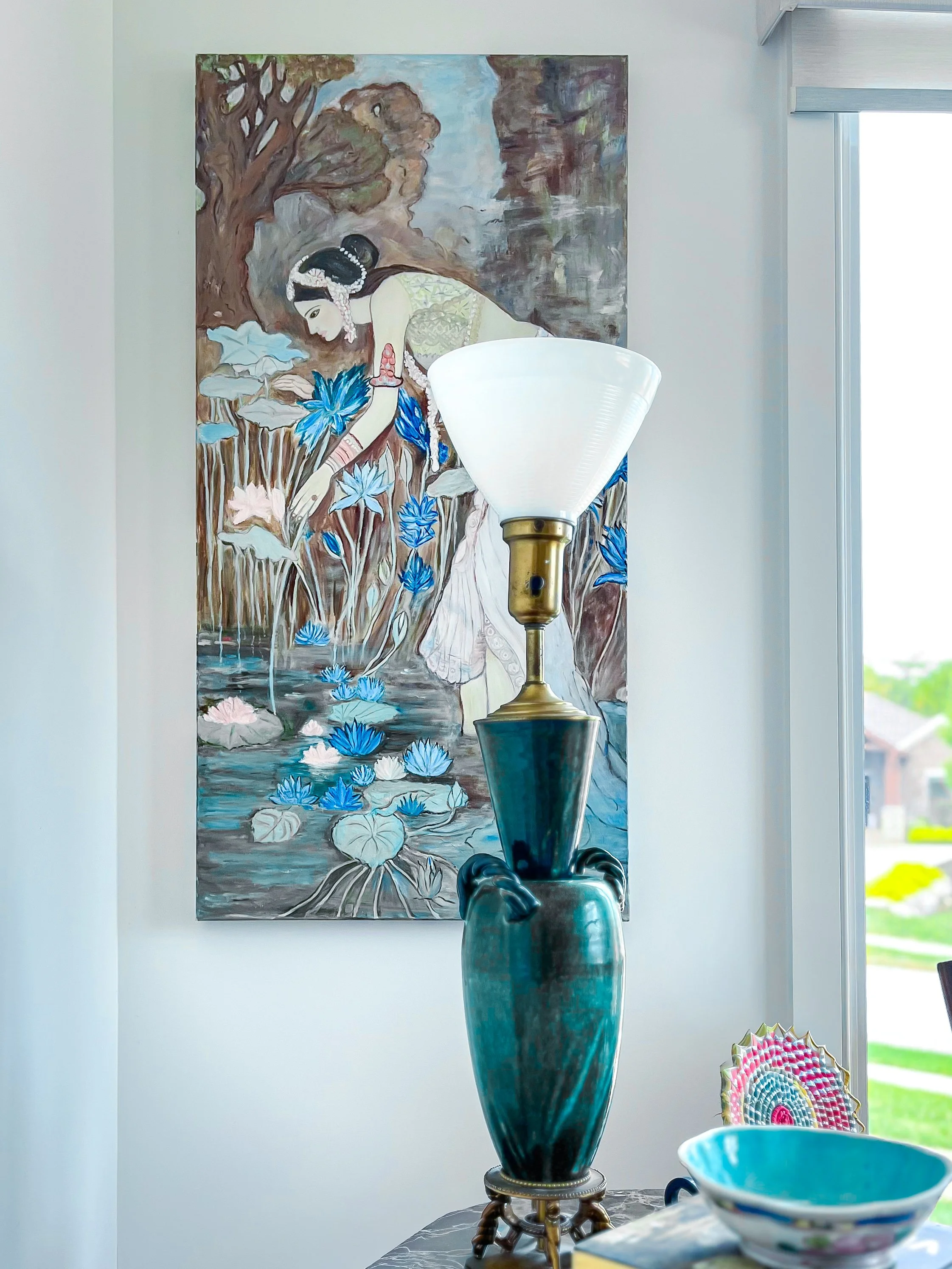 My parent’s requested a warm and layered formal living room that was an inviting spot for entertaining friends. They wanted to celebrate their South Asian heritage by showcasing their collection of artisanal crafts, Persian rugs and paintings created by my mother. As avid readers, they also wanted a bright library with a handsome desk for work and a comfy couch for curling up with a book.
